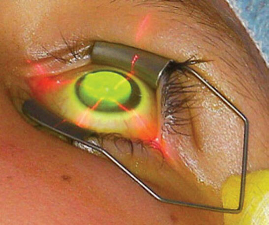 Abbildung 2: Beim Crosslinking wird die Hormhaut mit ultraviolettem Licht bestrahlt